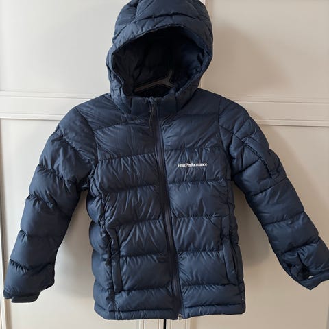 Haglöfs dunjacka i storlek 140 för barn, unisex. Jackan är svart och grön, kan vändas och användas åt båda hållen. Tillverkad av dunmaterial. Den har avtagbar huva och dragkedja framtill. Jackan visar tecken på slitage med en mindre reva vid nederkanten på den gröna sidan. Annars väldigt gott skick.