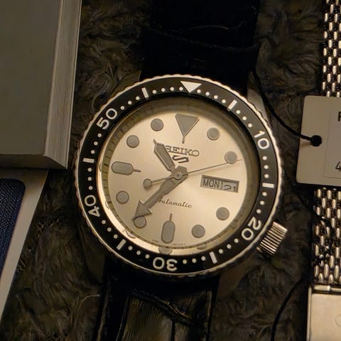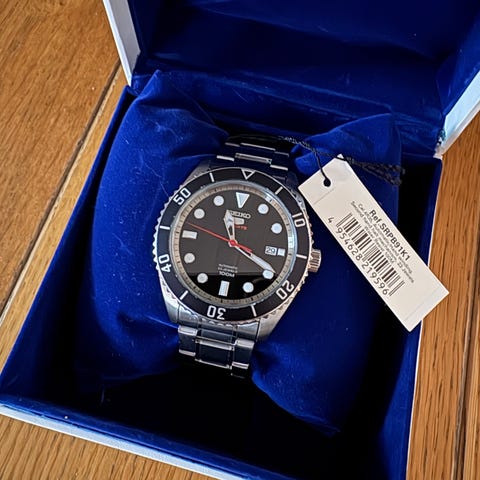 Automatiskt dykarur från Seiko säljes. Originallåda, papper och ett extra svart läderband följer med.