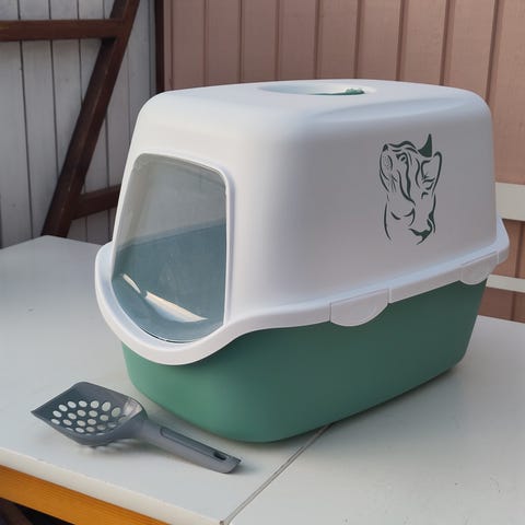 Stor kattlåda för hörn med tak
