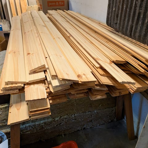 Spåntad Furu 12x80mm Längd 180cm (ca 100 st längder) ca 14 kvm Obehandlad