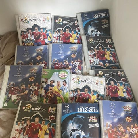 Min son säljer några fotbollskort ur sin samling.