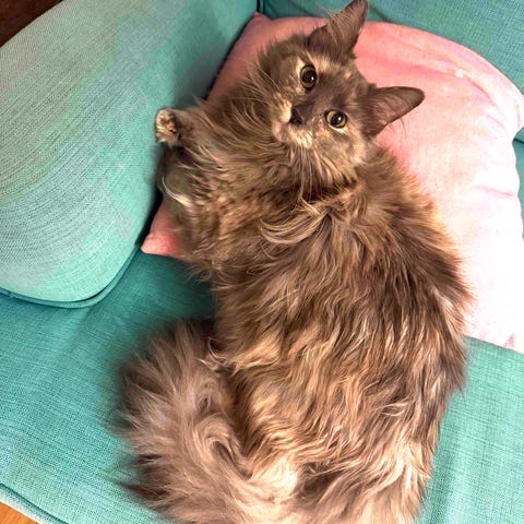 Han kommer och myser i soffan och sängen på sina villkor. Men att gå fram och klappa honom tar han såklart emot. Inte klappa på mage och sida av kroppen, tror han är kittlig.