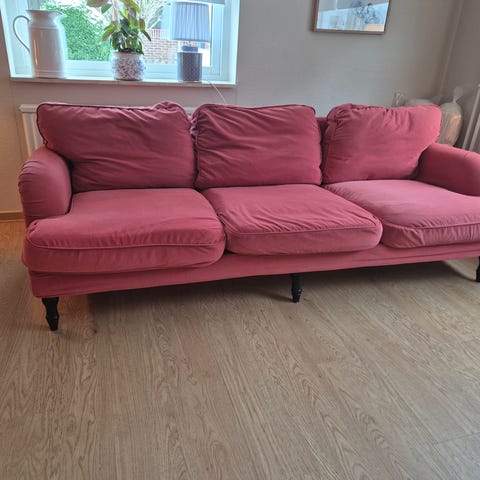 Flyttat till mindre så måste bli av med min soffa. Den är väldigt skön och stabil. Har inga mått här men gissar den är lite längre än 2 meter då jag kan ligga rakt mellan armstöden. Hämtas i marklägenhet nära parkering.
