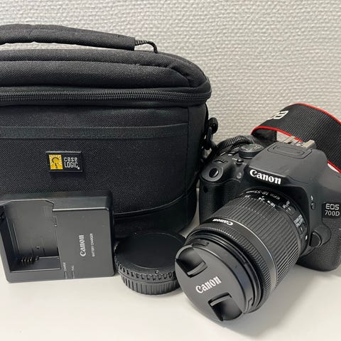 Canon EOS 760D är en digital systemkamera med vridbar skärm och flera kontrollknappar för fotografering. Kamerahuset är svart och tillverkat i plast med texturerad yta för bättre grepp. Produkten inkluderar två batterier och en laddare. Skärmen visar några repor och kamerahuset har mindre slitage på greppytan. Ca 6000 exponeringar.
