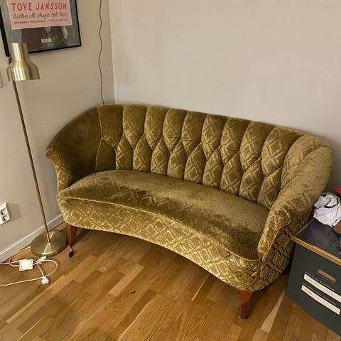 ca 2 meter soffa i gammaldags rosa, köptes på inrednings butik länge sedan för 23000,