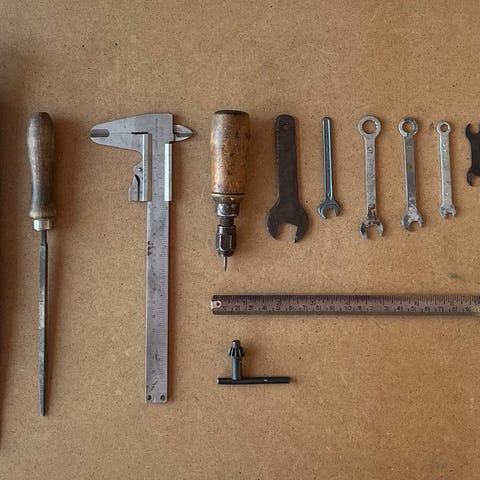 Verktygsset med tänger och tumstockar