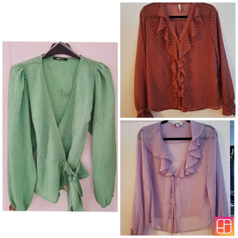 Ljuslila blus med långa ärmar och knäppning framtill. Blusen har en klassisk krage och manschetter med knappar.