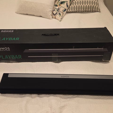Sonos playbar i svart. En ljudenhet avsedd för förbättrad ljudupplevelse vid tv- och musikuppspelning. Funkar perfekt med grymt ljud. Kan hämtas i gbg centrum.