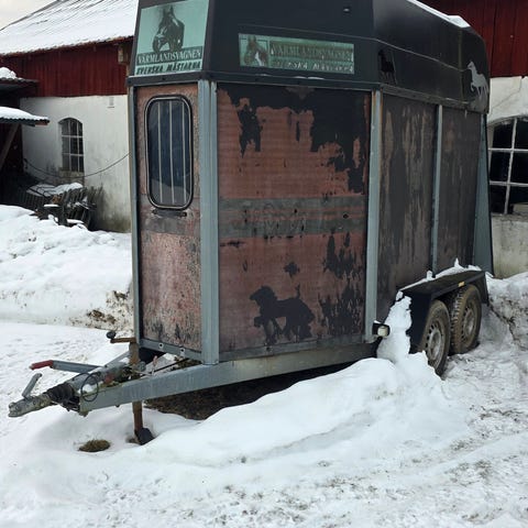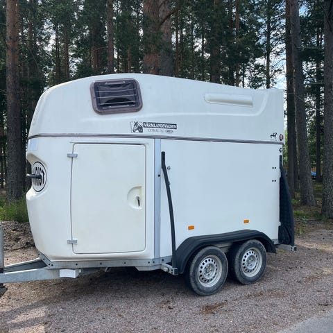 Hästtransport med totalvikt 1300kg, lastvikt 670kg. Boggiesläp som ligger bra på vägen och kan dras av många bilar på B-kort.