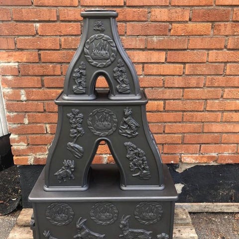 Keddy kamininsats i svart gjutjärn. Stor modell. Tung! Måtten är cirka 50cm djup, 59 cm bred och 50cm hög. Rökrörsanslutnikg 15cm.