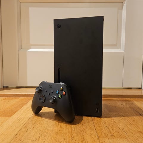 Microsoft Xbox Series X spelkonsol med två handkontroller och headset