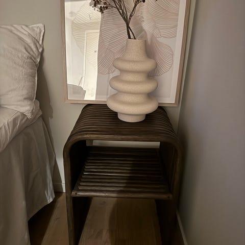 Säljer Maze F-hylla åt vänster. Nypris 2399kr. Säljer endast pga. flytt då den inte passar in i ny bostad. Ser helt ny ut. Valnöt.