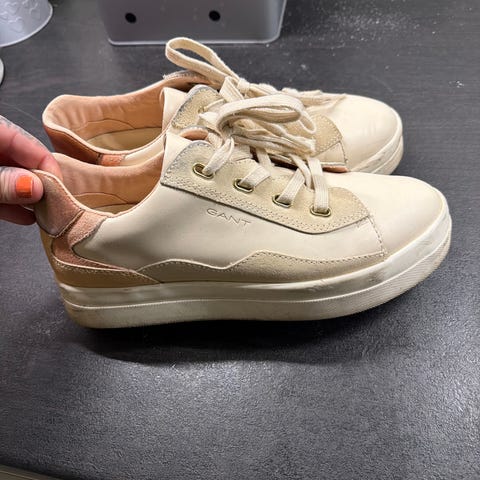 GANT Tofflor i storlek S/M, beige färg. Tillverkade i mjukt material 70-% bomull 30% modal med broderad logotyp på ovansidan. Har en gummisula för bättre grepp. Designade för inomhusbruk.