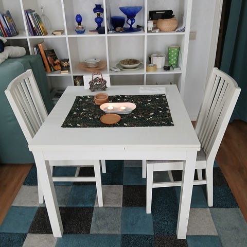 Matbord Bjursta Svart från ikea med inbyggd utfällsskiva.