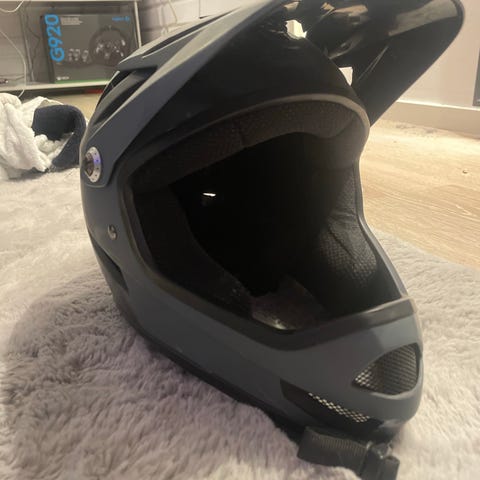 Köpt i järvsö bikepark och sedan använd i ungefär 2 och en halv månader (aldrig kraschat sedan dess) Kamera klistrade fästen finns på hakan och under visiren.