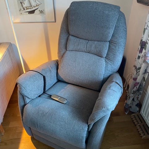 Elektrisk lyft- och lutningsfuktion. Mörkgrått tyg.