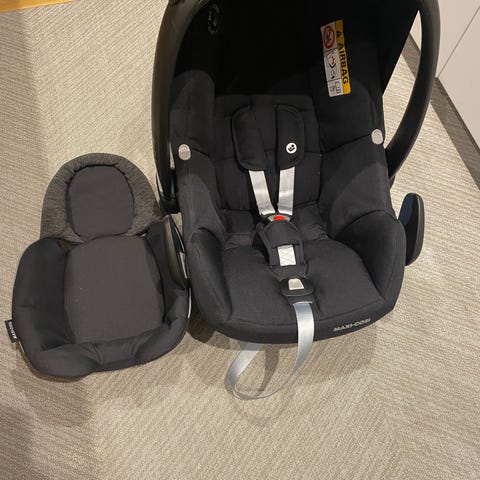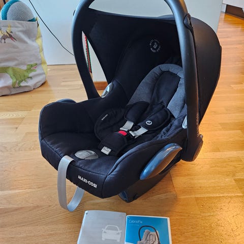 Maxi-Cosi Cabriofix I-Size Babyskydd i svart. I fint använt skick. Nytvättad med oparfymerat tvättmedel inför köp. Kommer från djur och rökfritt hem