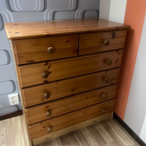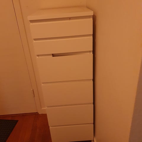 Byrå med tre lådor redo för upphämtning i centrala Strängnäs.