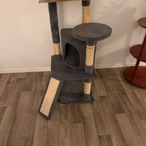 Katt Leksak träningshjul för katter med svart yttre ram och röd inre yta. Designad för att ge katter möjlighet till motion och lek. Hjulet är stabilt och har en rund form som passar kattens rörelsemönster, säljs pga av flytt.