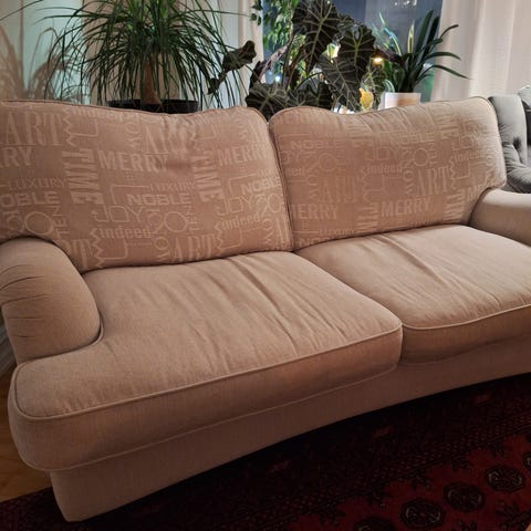 Vacker och skön björksoffa som blir ännu finare med lite polish och omsorg. Ges bort pga platsbrist.