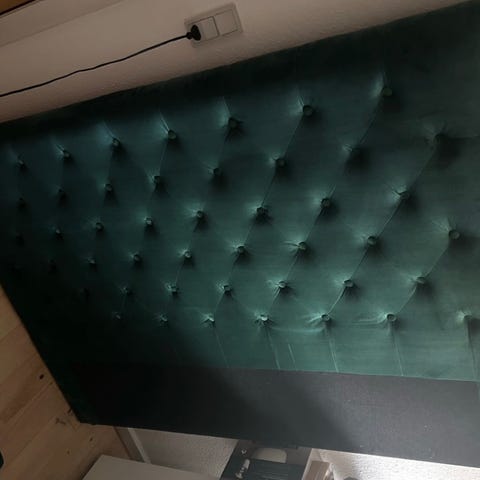 Säljer en elegant och tidlös sänggavel från Jensen. Klädd i ett ljusbeige/grått tyg med klassisk knappad design som ger ett exklusivt och ombonat intryck i sovrummet.