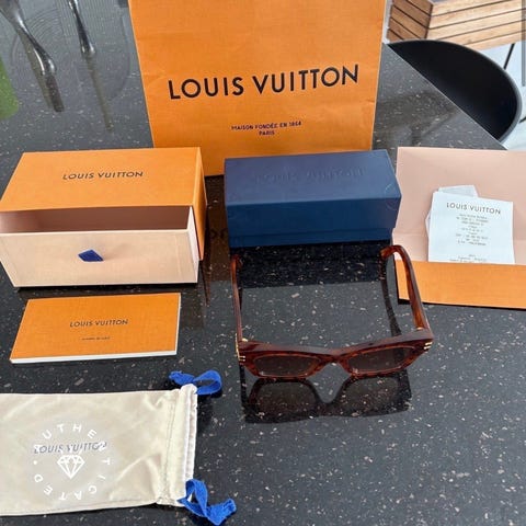Säljer ett par Louis Vuitton 1.1 Millionaires solglasögon i mycket fint skick. Använda ytterst sparsamt, nästan som nya. Inga repor. Kvitto samt originalbox, och putsduk medföljer.