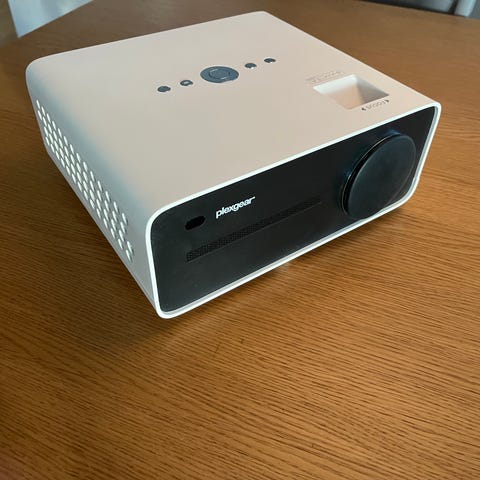 Projektorn fungerar bra och lampan har i dagsläget gått 1629 timmar, vilket innebär att det återstår en betydande del av lampans totala livslängd. Vid försäljning medföljer original fjärrkontroll, ett takfäste för fast installation samt en praktisk och reglerbar hållare som gör det enkelt att justera projektorns position och vinkel efter behov.