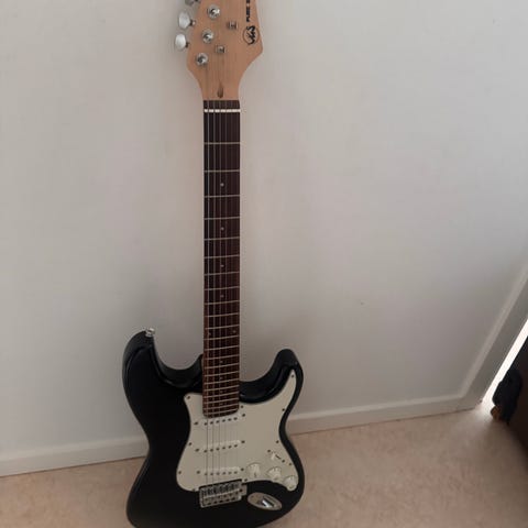 Köpt för ca 4 år sedan och har sedan dess mest stått. Har några få repor gjorda av plektrumet