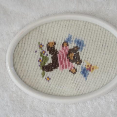 Liten tavla med broderad fjäril träram