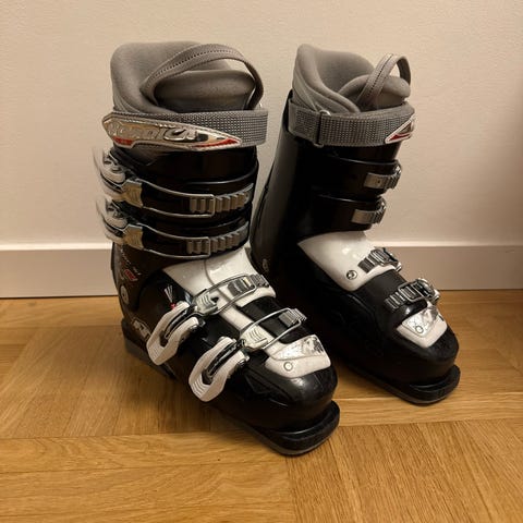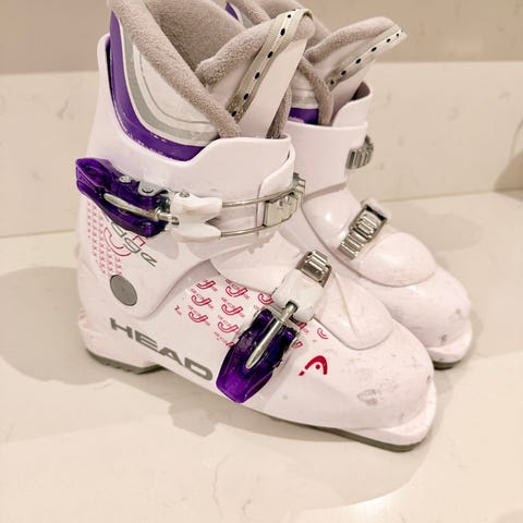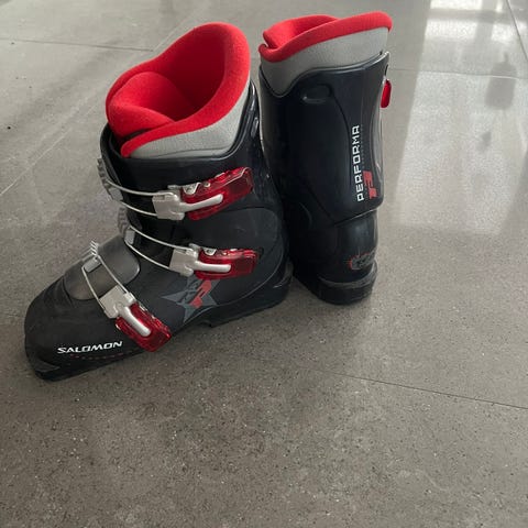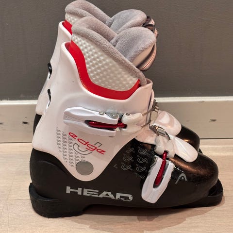 Head Edge J pjäxor junior i svart, röd och vit färg, storlek 22,0-22,5 mondo. Pjäxan är totalt 261mm. Skidpjäxorna har två spännen för justering.