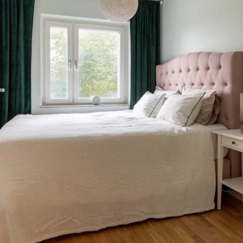 Mio säng med sängram och madrass i grått tyg. Sängen har en stoppad sänggavel med knappar och en enkel, modern design. Passar för sovrum och erbjuder en bekväm sovplats.