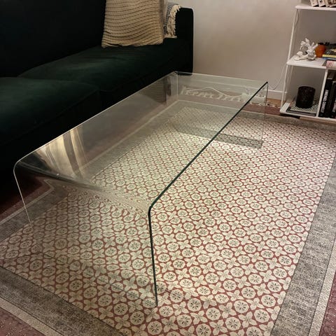 Stort soffbord (lejontassar) av trä med glasskiva. Bordet är om målat. Vitt med silver på insidan. Väldigt bra kvalitet. Skavanker finns. Djur och rökfritt hem. Finns i Skarpnäck. Priset är fast.
