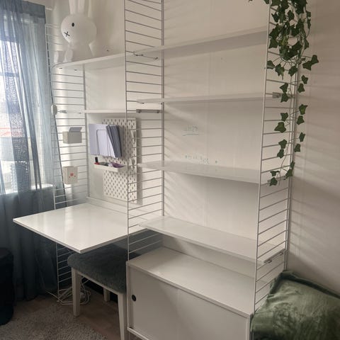String Hylla med 9 hyllplan, 1 tidninghållare och 3 skåp med skjutdörr