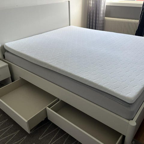 Dubbelsäng 160cm inkl sängram. Hela sängen inkl ram blir 170cm i bredd.