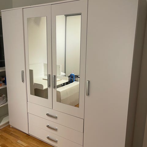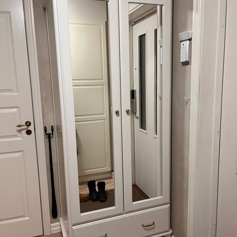 Inredning enl bilder, en v dörrarna har monterad spegel