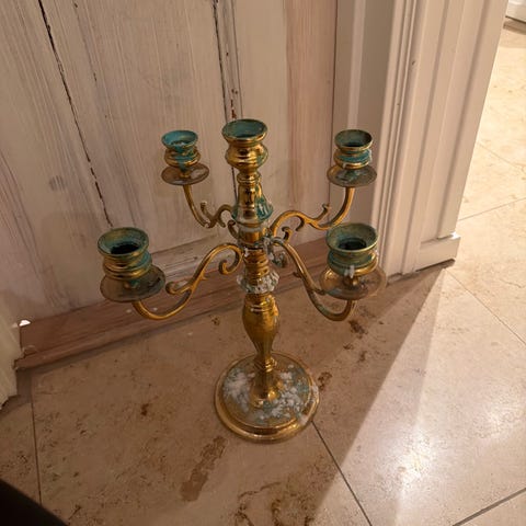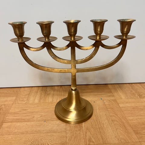 En lite mindre, men gedigen, version av en kandelaber i mässing.