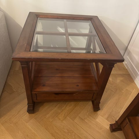 Finns tillhörande sidobord & Avlastningsbord. Kolla gärna dem andra två annonserna. Är man intresserad av alla tre kan paketpris ordnas.