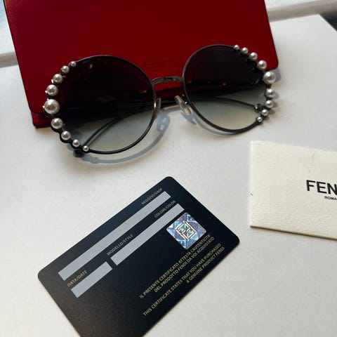 Klassiskt Fendi-mönster med broderad logotyp framtill och på sidan. Justerbart spänne i guldmetall baktill. Mycket hög kvalitet och lyxig känsla.