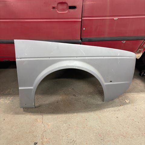 Vänster framdörr är från 1999 och saknar glasruta, saknar elmotor och mekanism, saknar el kablar, saknar beklädnad