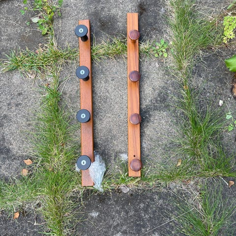 Pistolstället är 21.5 centimeter djupt för att passa hyllplanen i de flesta vapenskåp. Annonsen avser ett pistolställ, men på bilden visas två för att demonstrera hur två eller flera pistolställ går att koppla samman som moduler. Bredden för kolven är 55mm.
