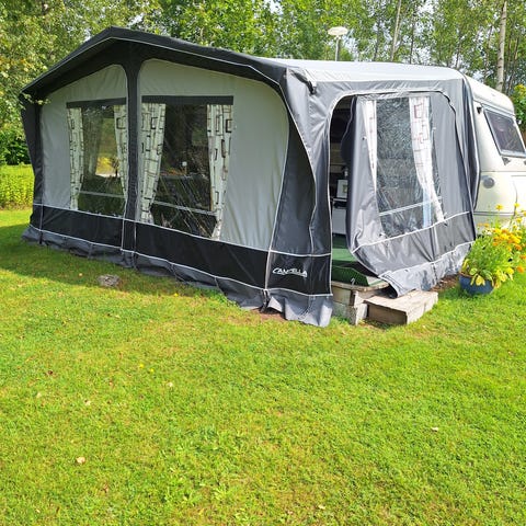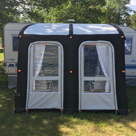 Det universala luftförtältet Kampa (Dometic) motor ace air 400 (anslutningshöjd 235-265) med tillhörande annexe för extra utrymme/sovplats. Passar både husvagn och husbil.