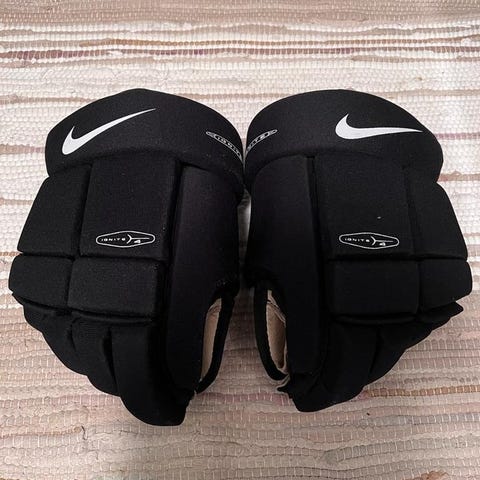 Nästan nya True ishockeyhandskar i svart färg. Handskarna är designade för ishockey och ger skydd och rörlighet för senioranvändare.