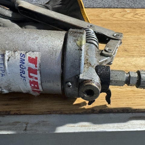 Fettspruta, smörjspruta för att applicera smörjfett på mekaniska delar