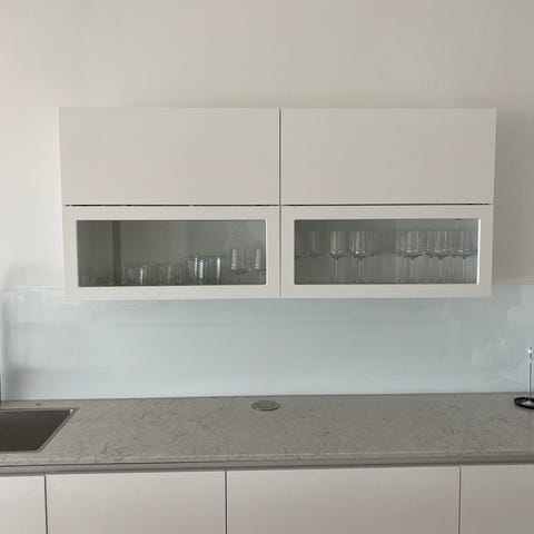 Köksskåp med vitrindel och svart kompositskiva