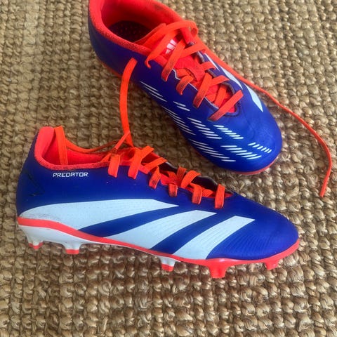 Adidas X 16.4 fotbollsskor i röd:ish färg, storlek 32,. Skorna är med dobbar för bra grepp på gräsplanen.