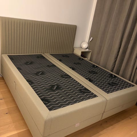 180cm bred, madrass:fast/fast, ljusbeige med bäddmadrass exclusive.