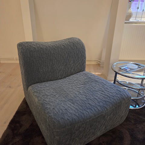 Design fåtölj i svart konstläder med nackkudde från mio.