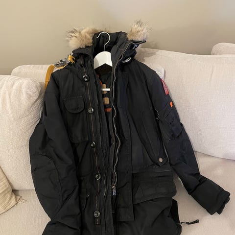 Parajumpers Masterpiece Series jacka i svart färg, storlek S. Tillverkad i dunmaterial, avsedd för herrar. Jackan är designad för utomhusbruk och erbjuder isolering och skydd mot kyla.