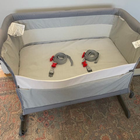 Jag har fått i present likadant säng och denna stått i sovrummet. Perfekt skick. Väldigt ergonomiskt. Maxi-Cosi Iora Air 2-i-1 Sidosäng Baby, Meshtyg runt om, 0–6 månader, max 9 kg, Co-sleeper med Gungläge, 4 Lutningslägen & 5 Höjdlägen, Enkel Glidfunktion, Lätt att Bära, 2 Hjul, Beyond Graphite.