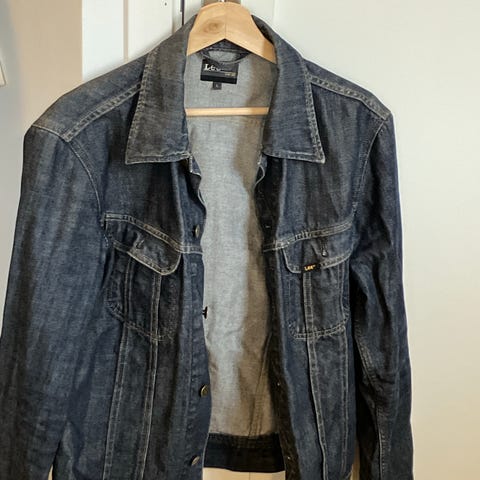 Lee jeansjacka, Relaxed Rider, i förmodligen stentvättad denim. Snyggt sliten klassiker, blir bara snyggare med åren.